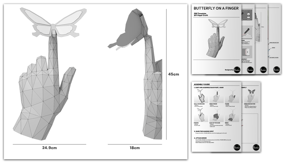 Butterfly On A Finger : Digital Templates, Papercraft Sculpture DIY